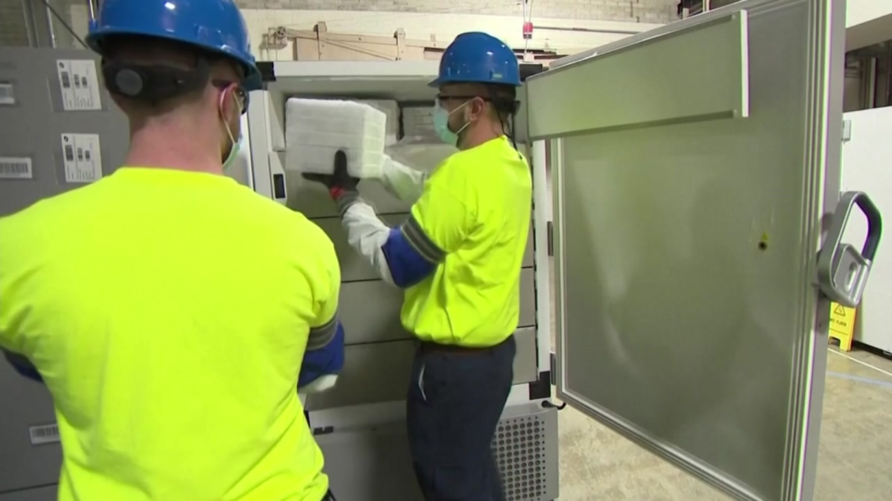 백신을 실은 첫 번째 트럭이 미시간 주 캘러머주에 있는 화이자의 백신 생산 공장을 떠났습니다.