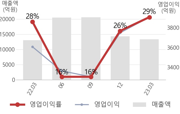 [서울=뉴스핌] 로보뉴스 = NAVER의 영업이익률이 전년동기 대비하여 1.0%p 증가하였다. 22년 03월 28%이던 영업이익률이 이번 분기에 상승하여 29%를 기록하였다.